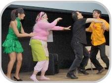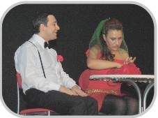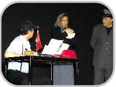 yapılırken oyuncular sahnede hareketsiz beklemekte. Seyirvciyi